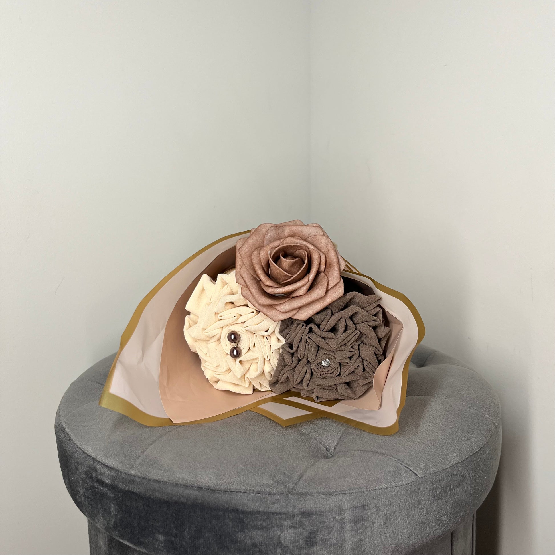 - Accent floral : Une rose artificielle embellit le centre du bouquet, ajoutant une note de beauté durable et captivante.
