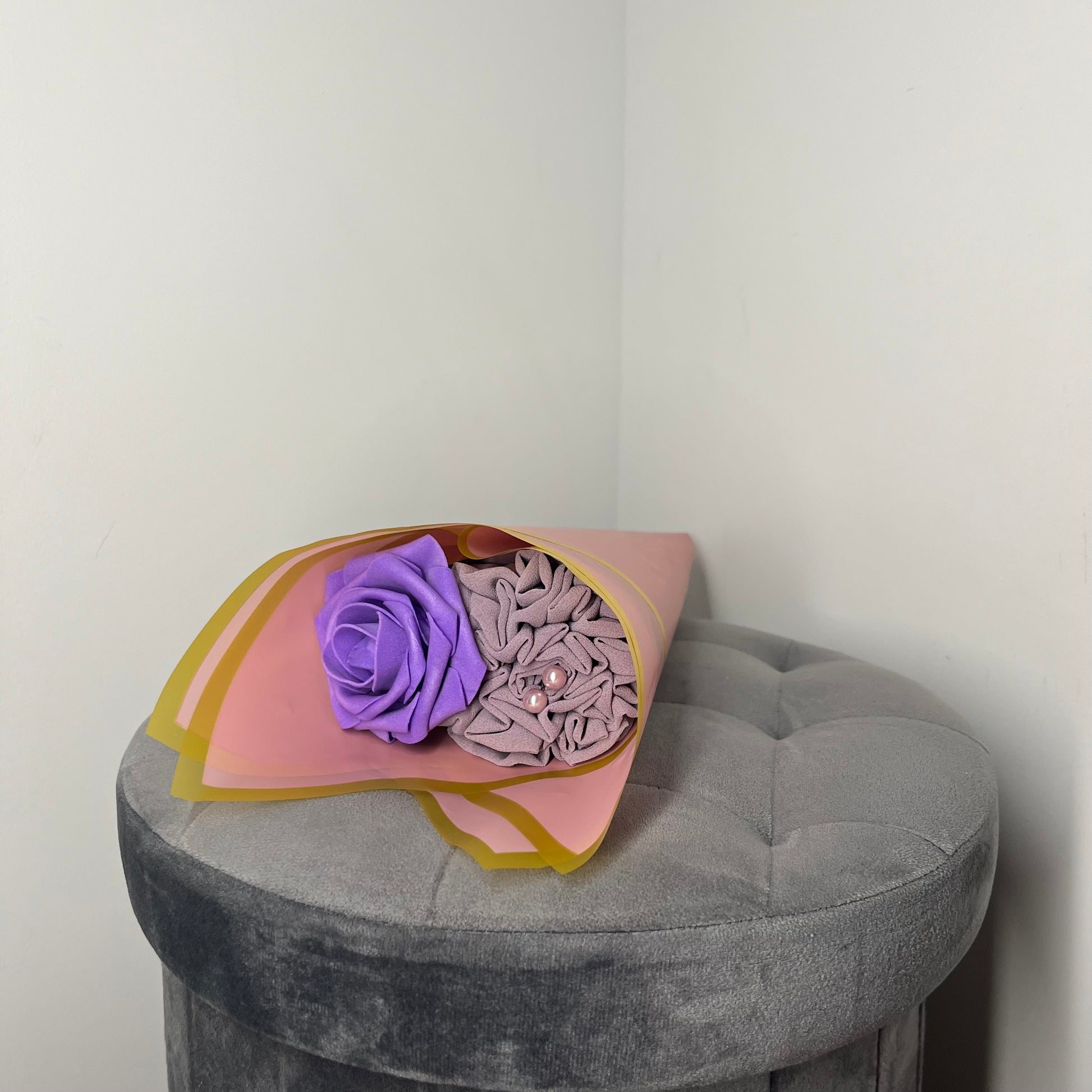 Parfait pour toutes les occasions spéciales, offrez-vous ou offrez à un être cher le cadeau d'une beauté subtile et captivante avec le bouquet de voile "Lilas".